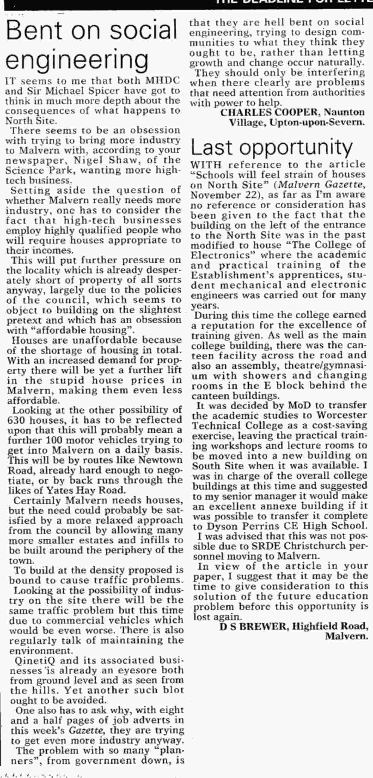 LETTERS FROM INTERESTED PARTIES FRIDAY 6th DECEMBER 2002