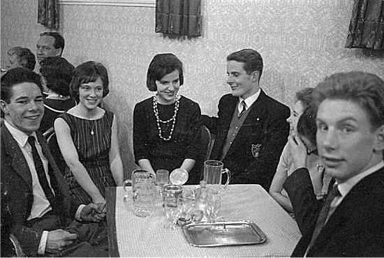 ![]() 21st birthday party for Len March (2nd left) with Chris? and Ian Scroop |