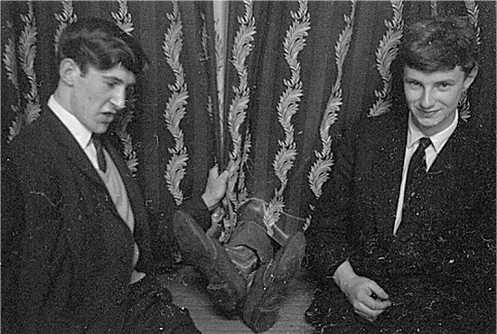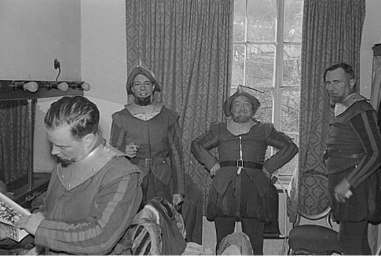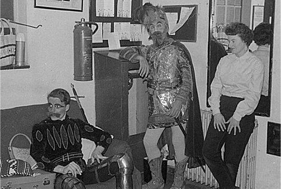 ![]() Dave Harries, 2nd left dressed as Cortes, prepares for his appearance in "Princess Ida" (April 1962) |