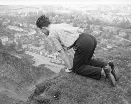 ![]() Dave contemplates his parachute jump into North Hill quarry |